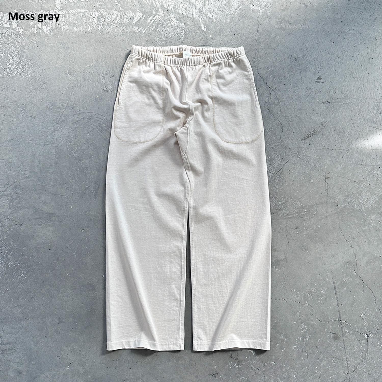 16番手の双糸を用いたヘヴィウェイトのワイドパンツ。
