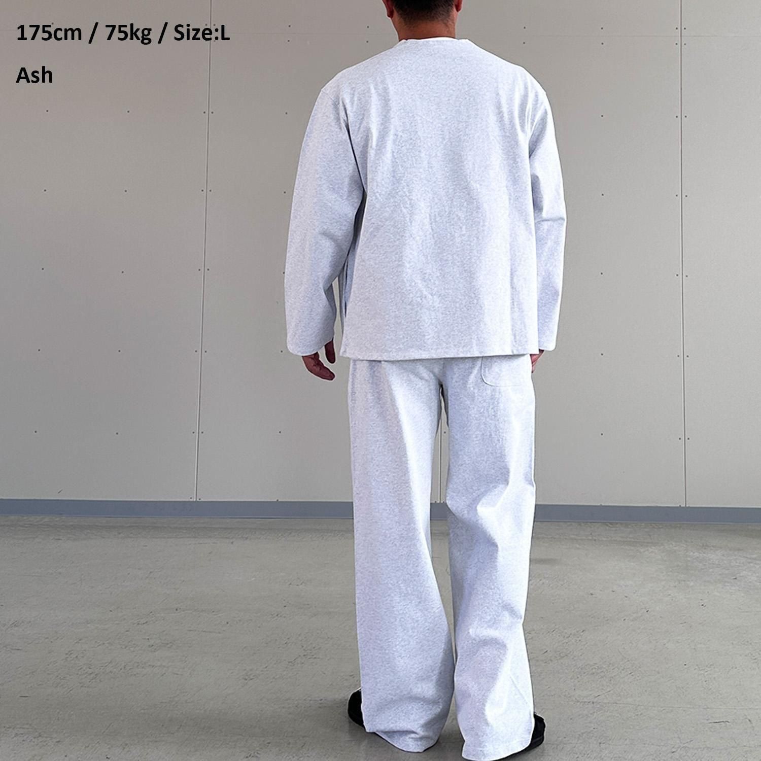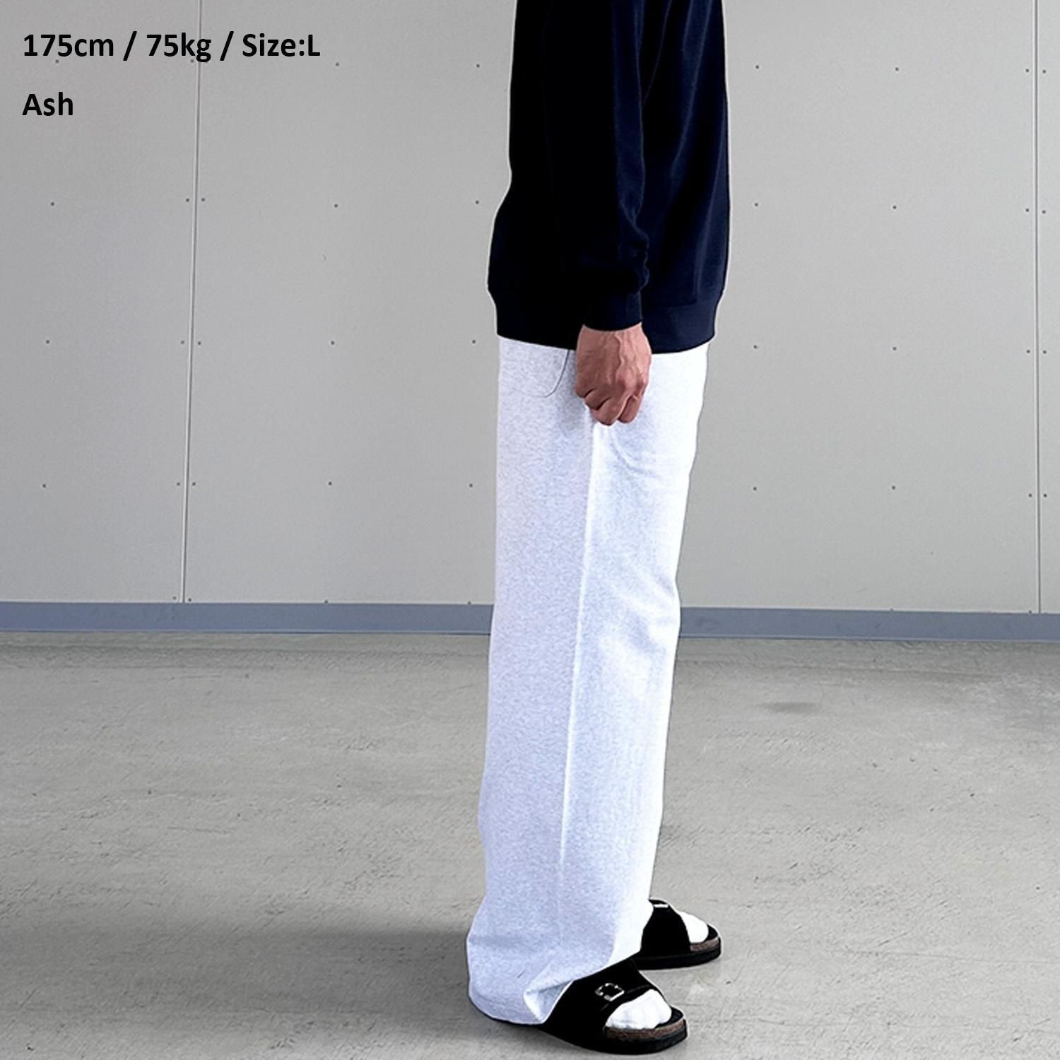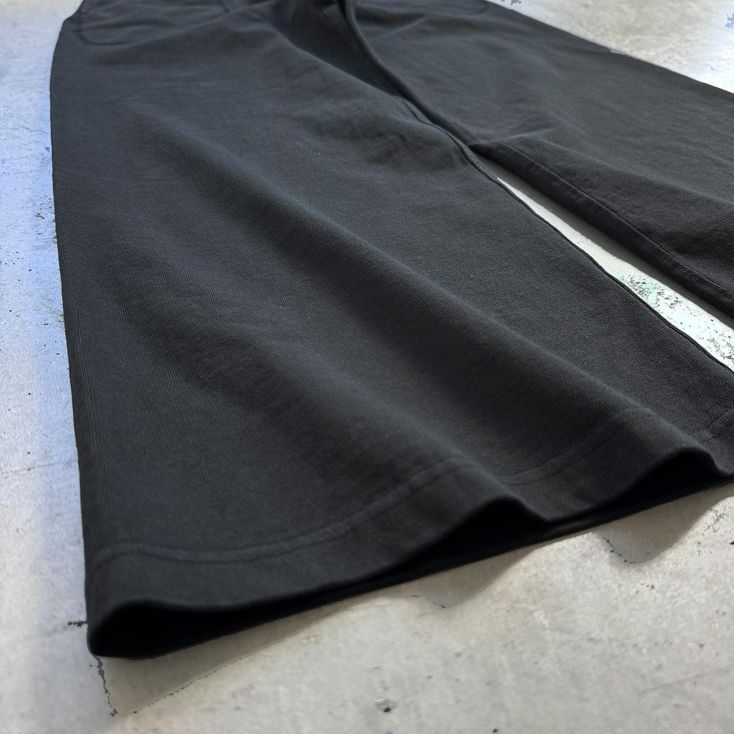 内側でのみ縫い合わせる手法で、シルエットがキレイに出るカットソー素材のワイドパンツ。