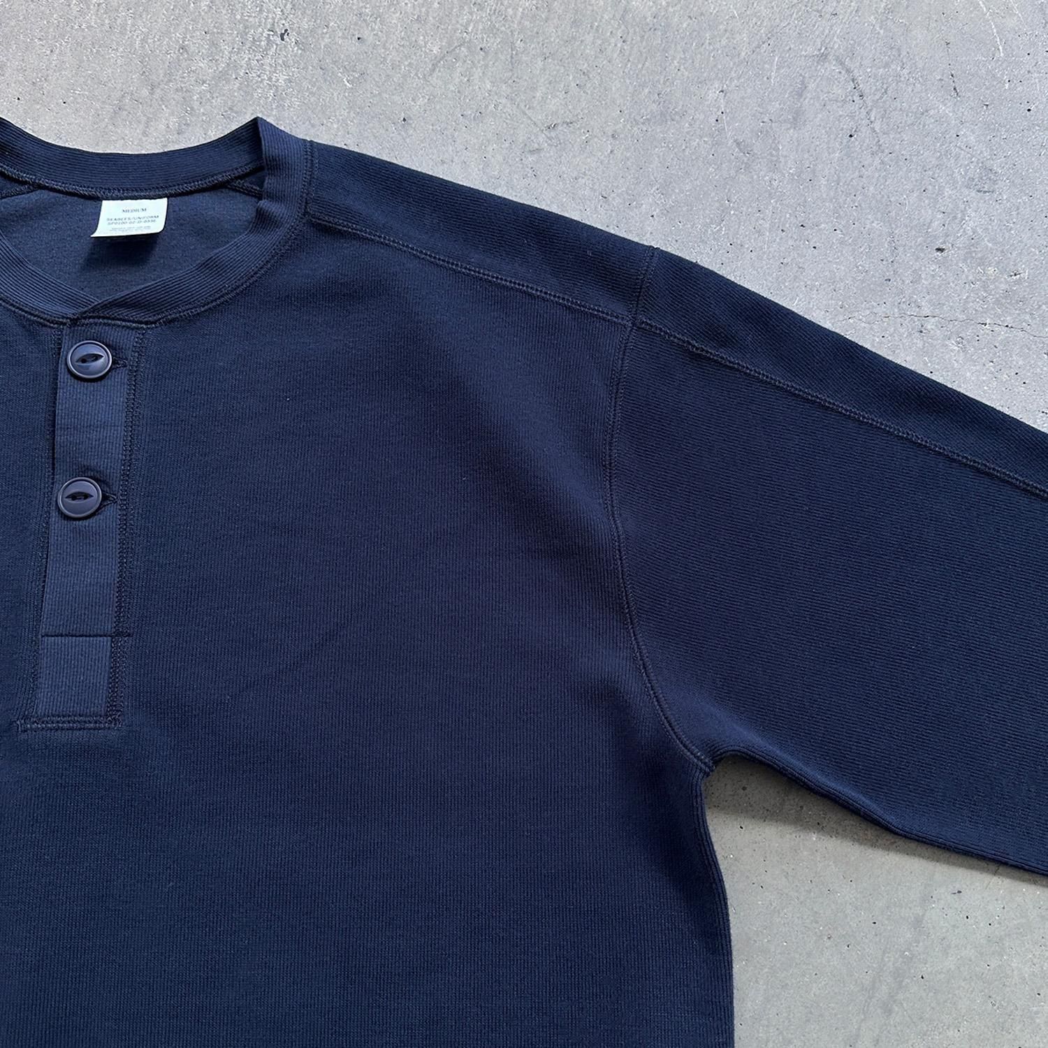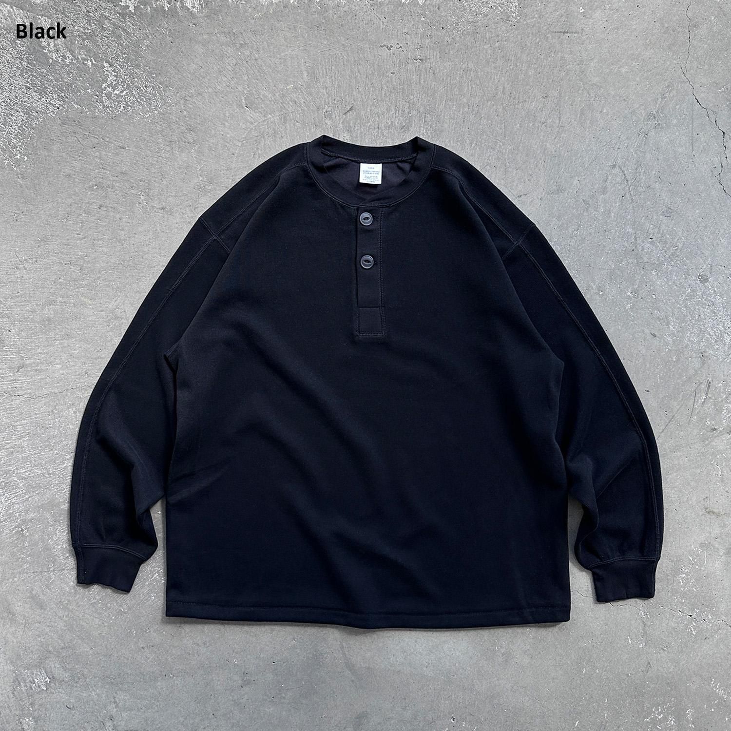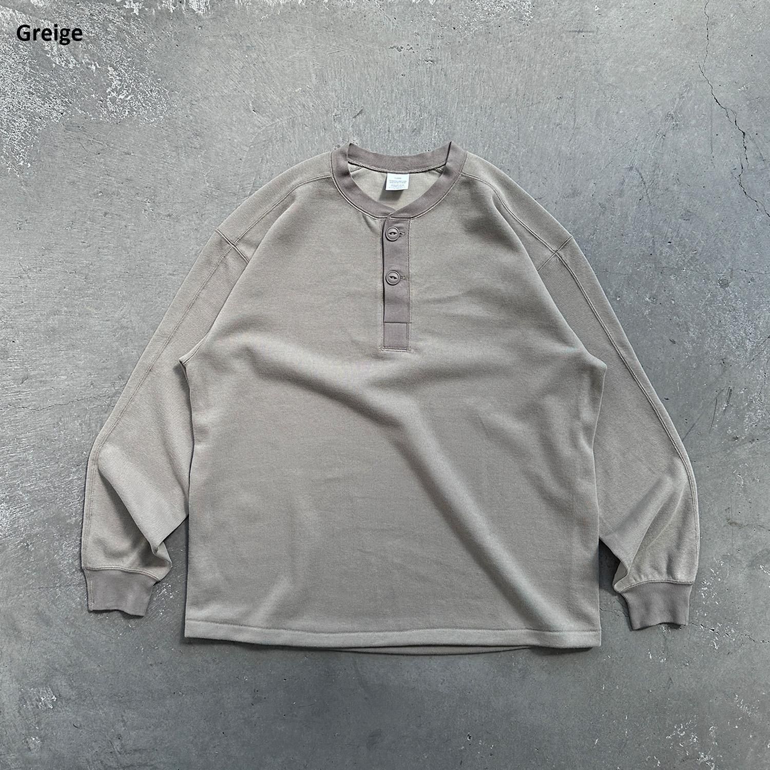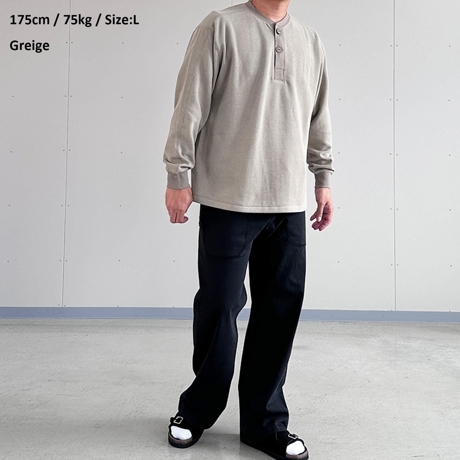 Knit & sewn Henley neck L/S ニットソーヘンリーネック長袖Tシャツ シンプル