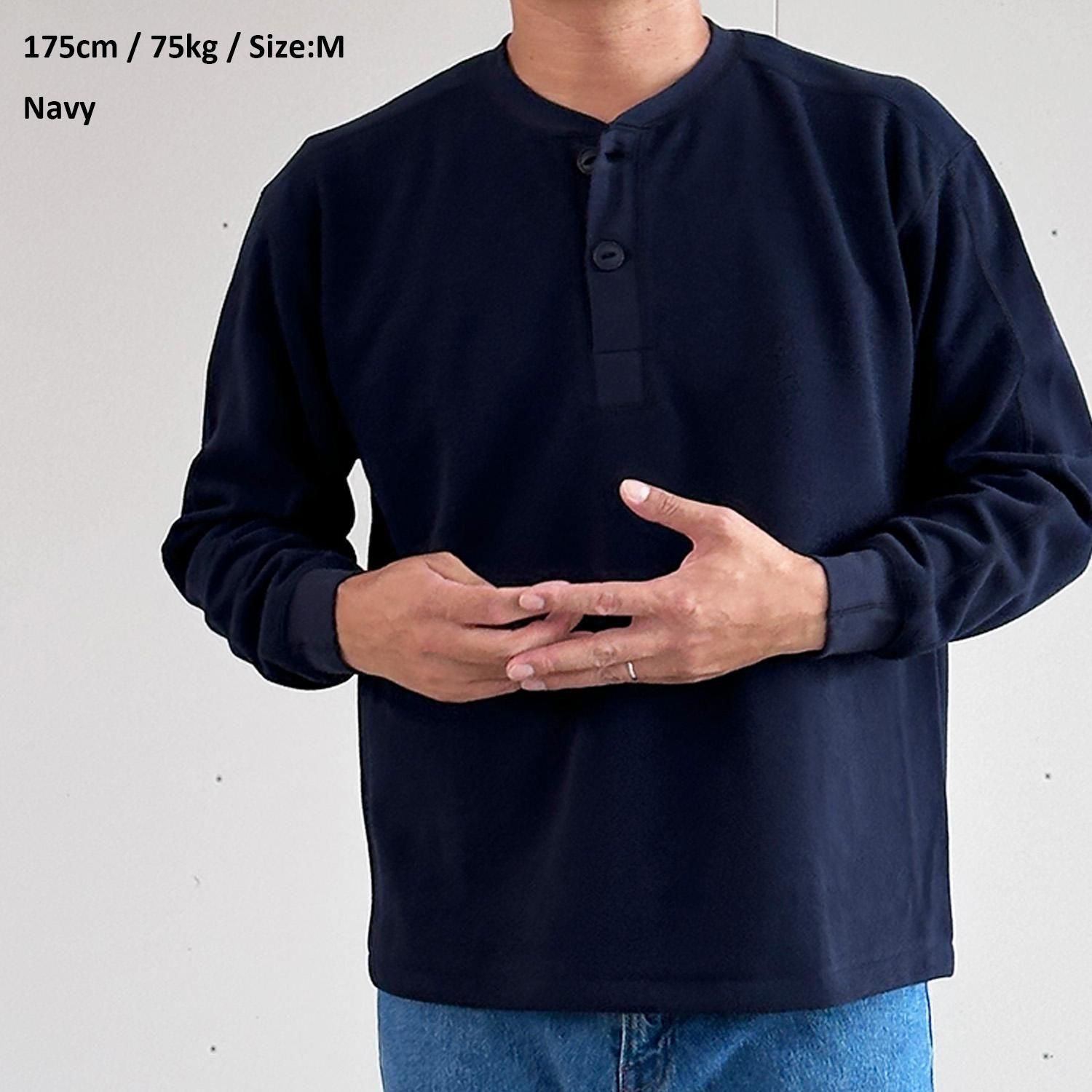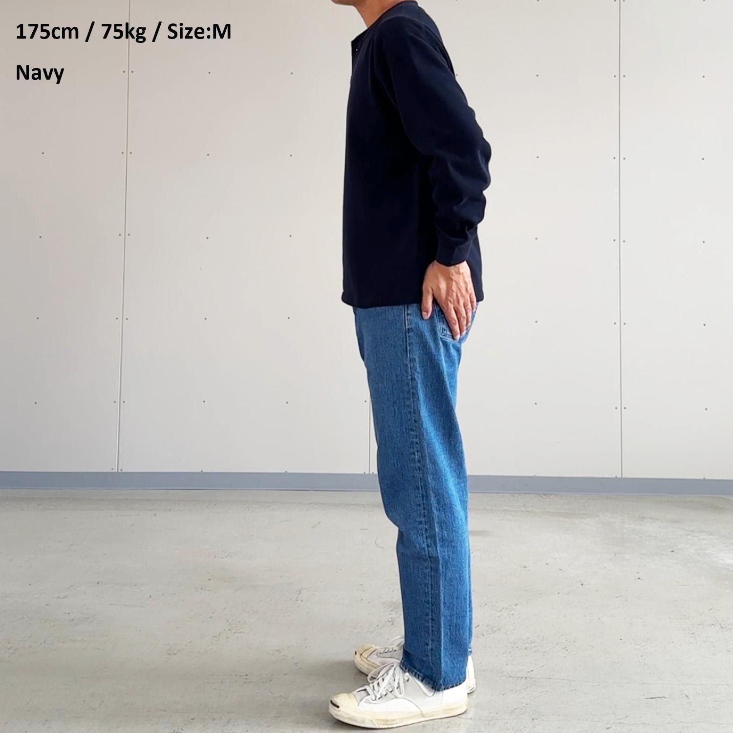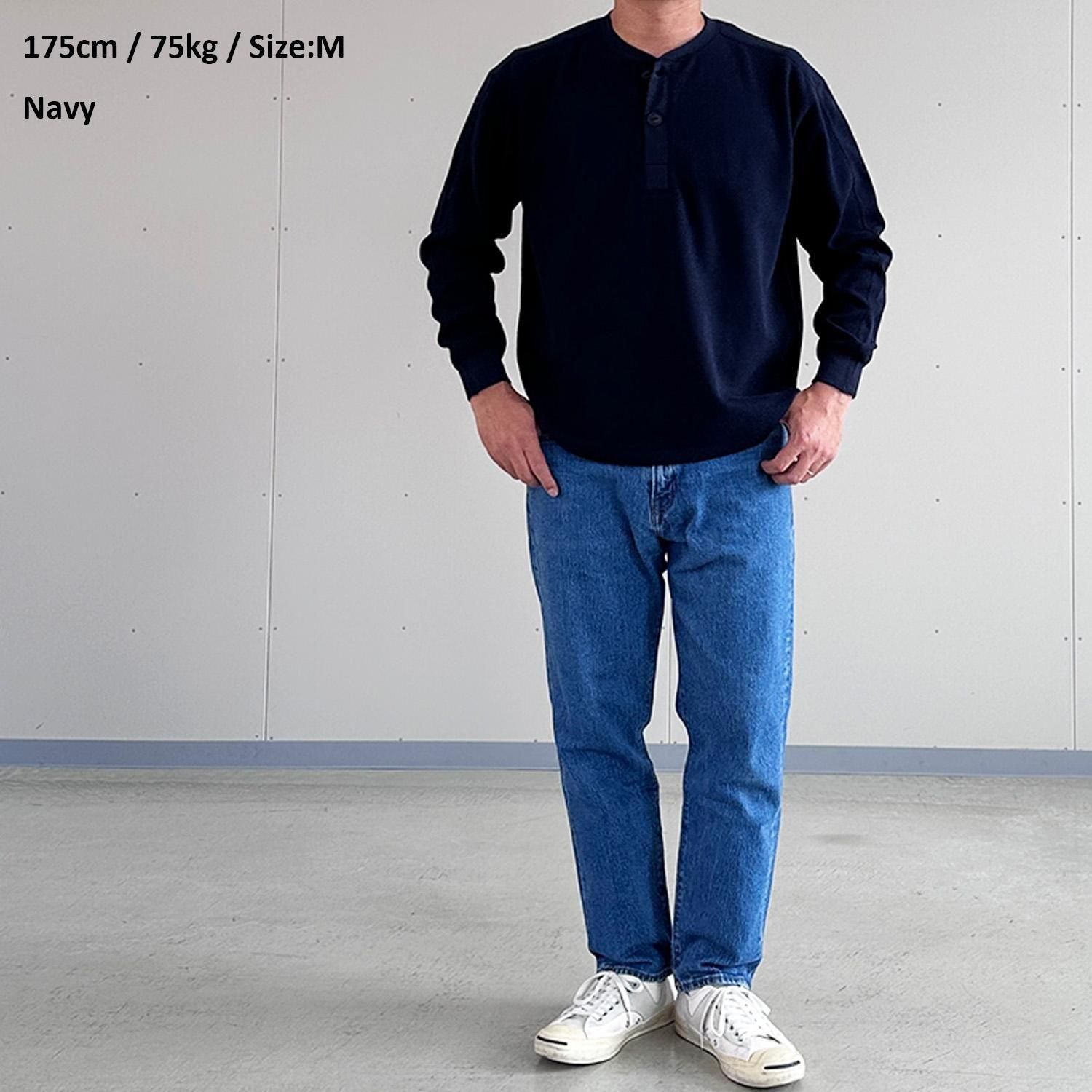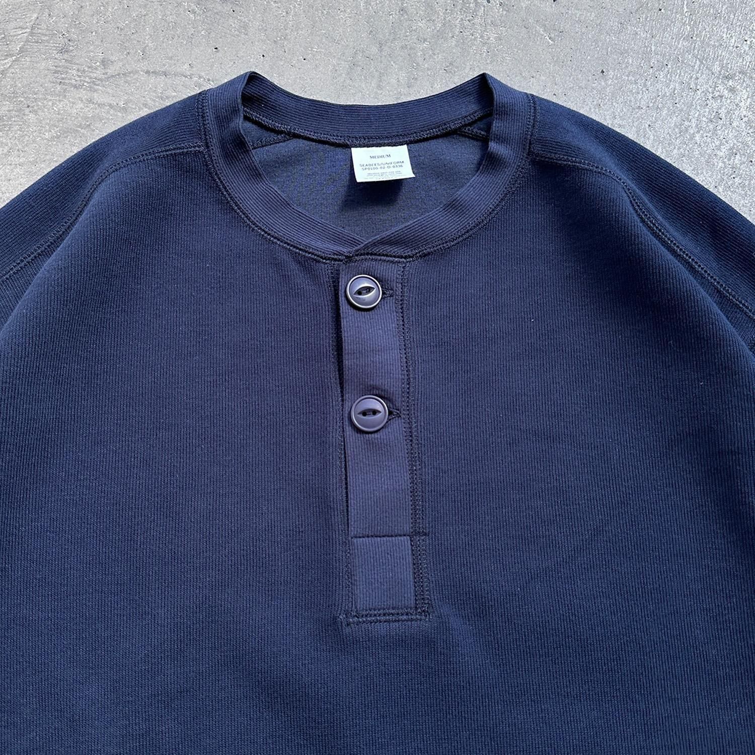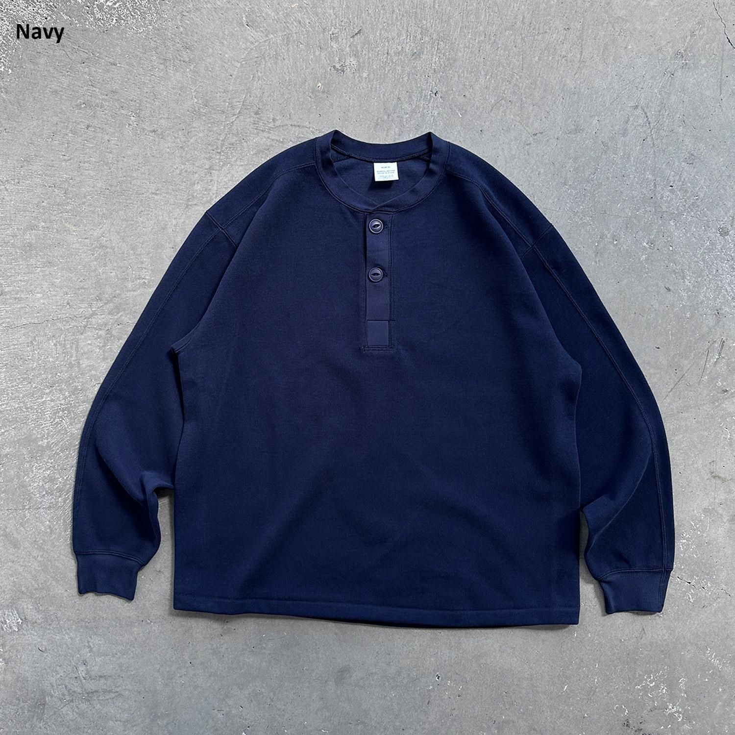 Knit & sewn Henley neck L/S ニットソーヘンリーネック長袖Tシャツ シンプル