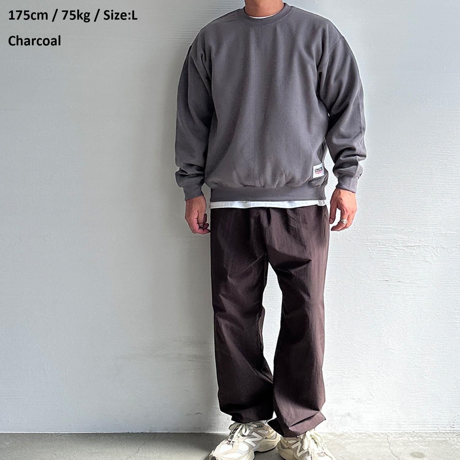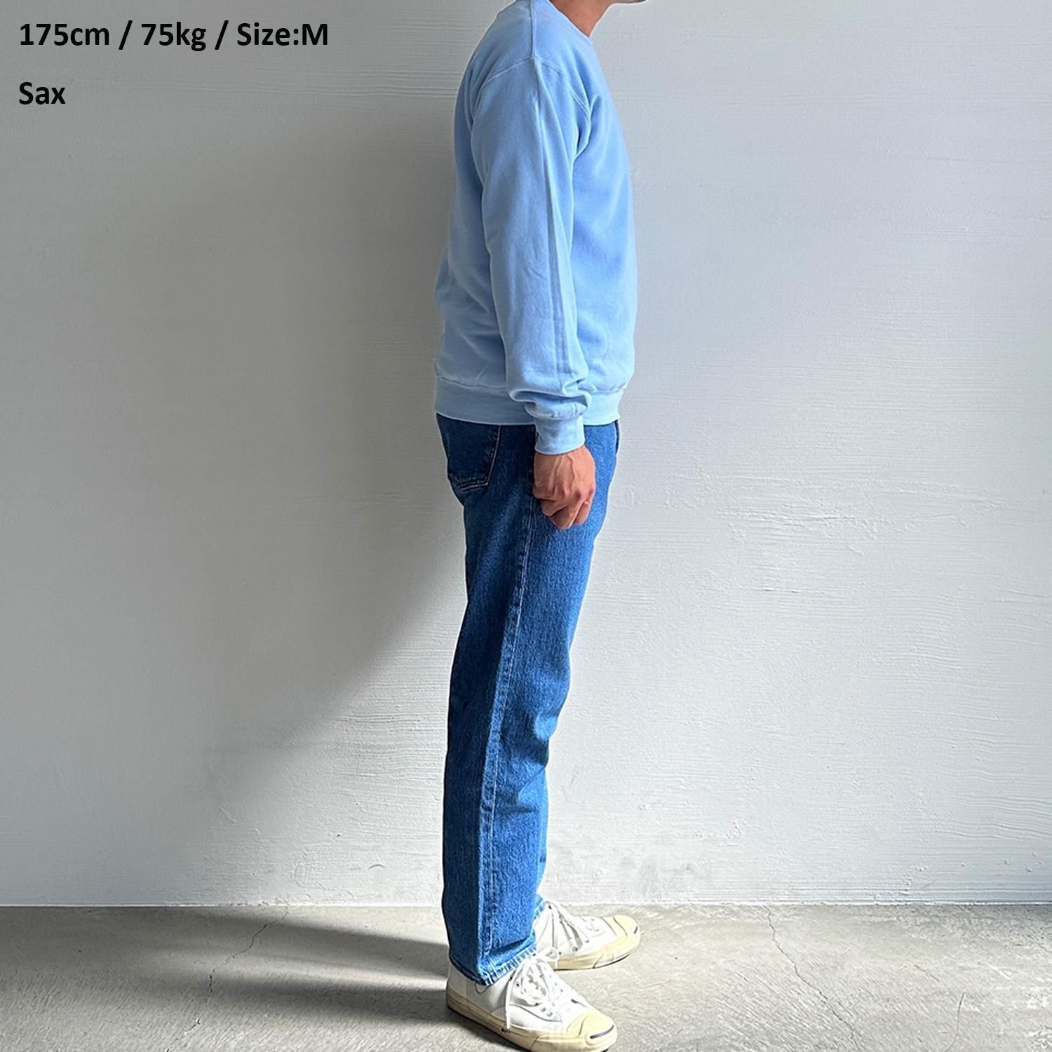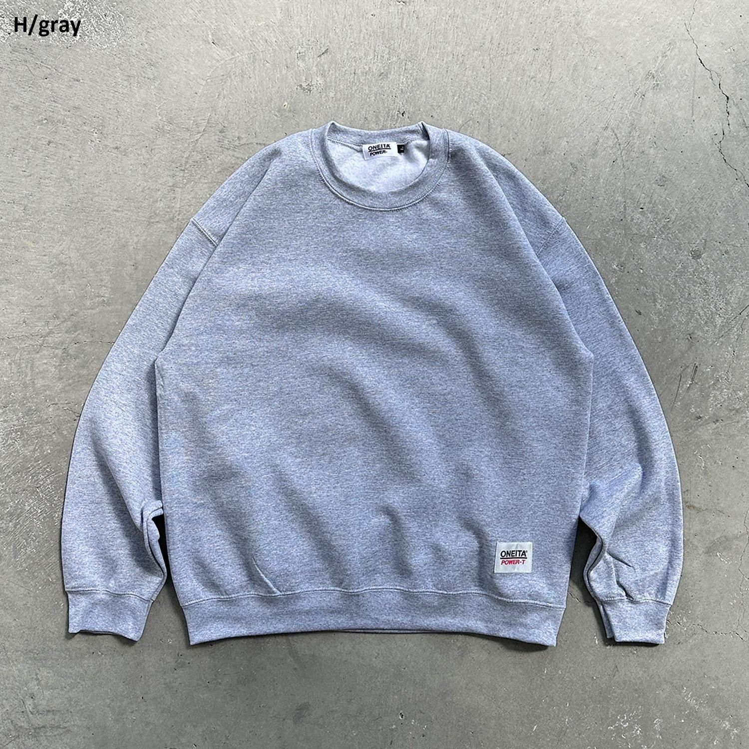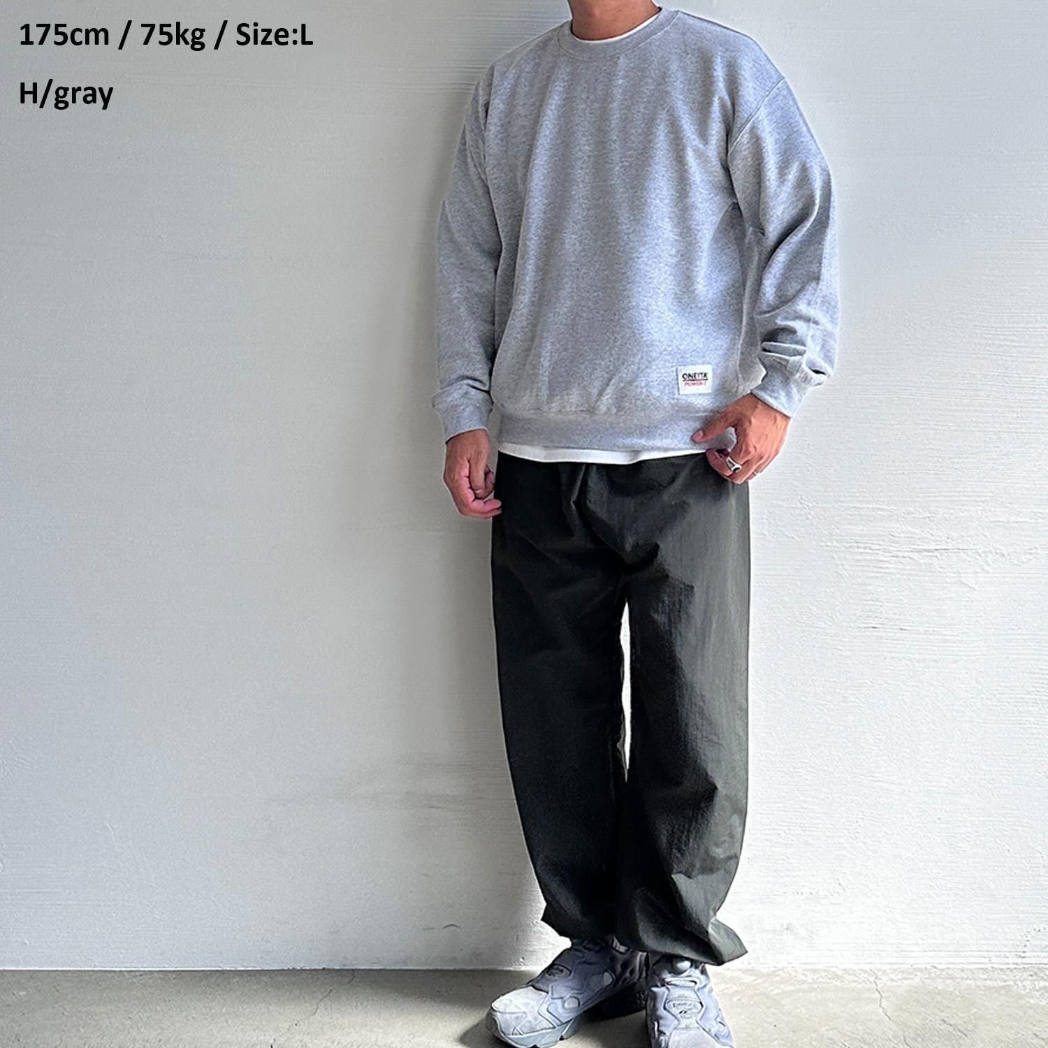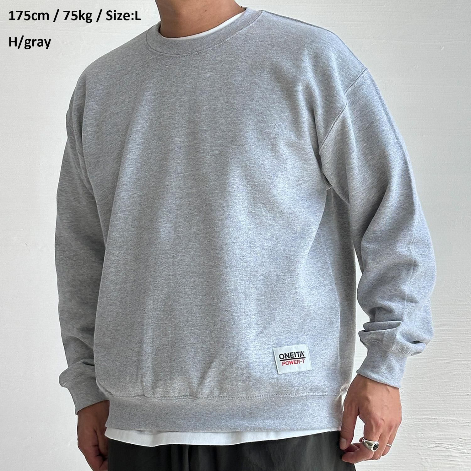 裾に付いたブランドネームが眩しい、ベーシックな裏起毛素材のスウェットシャツです。