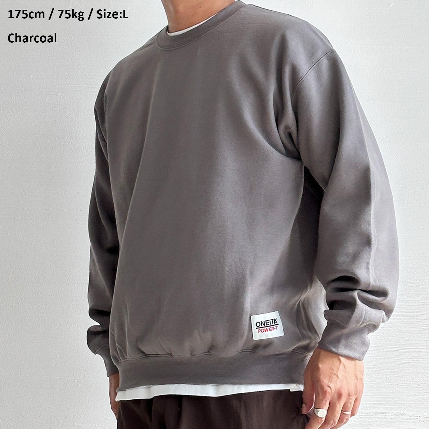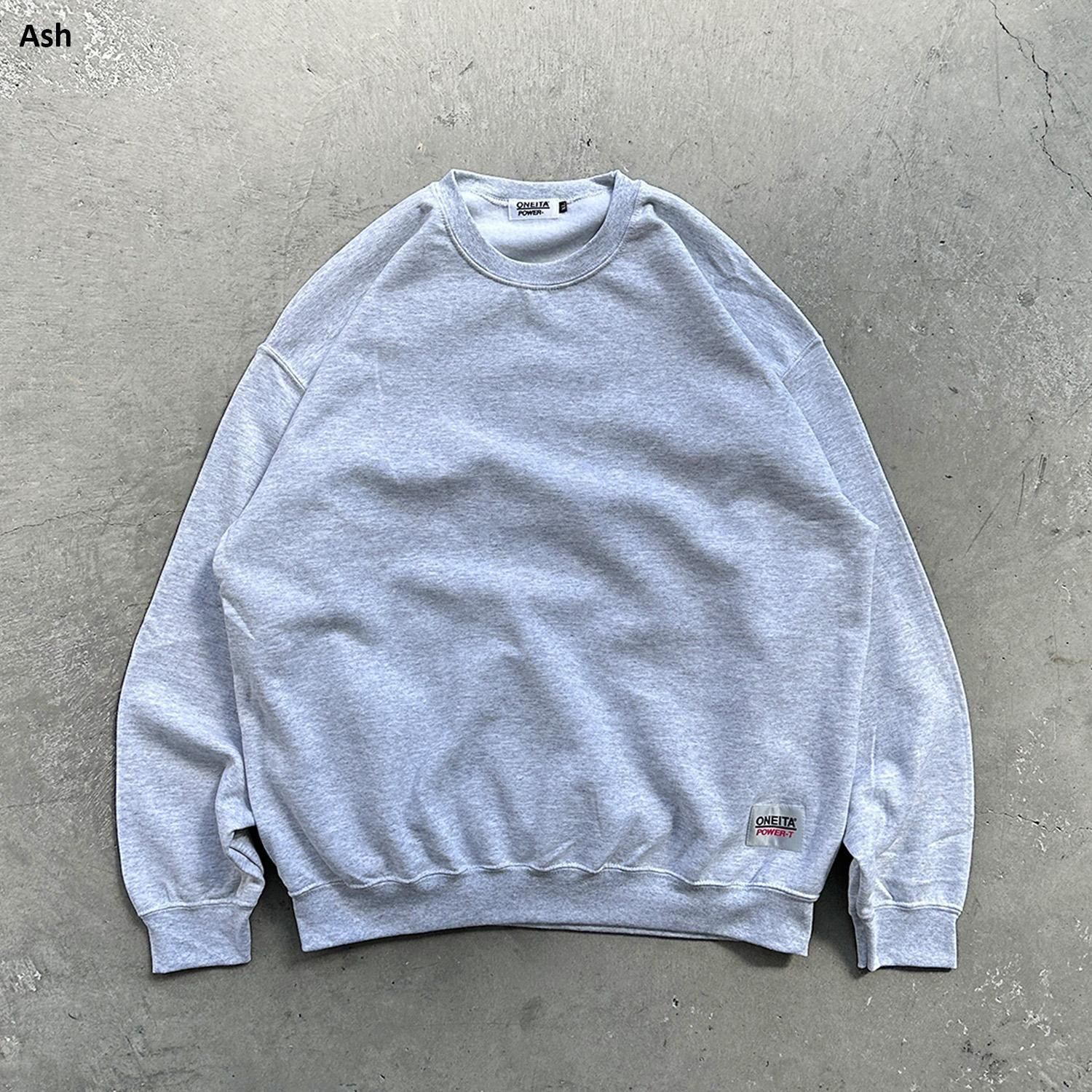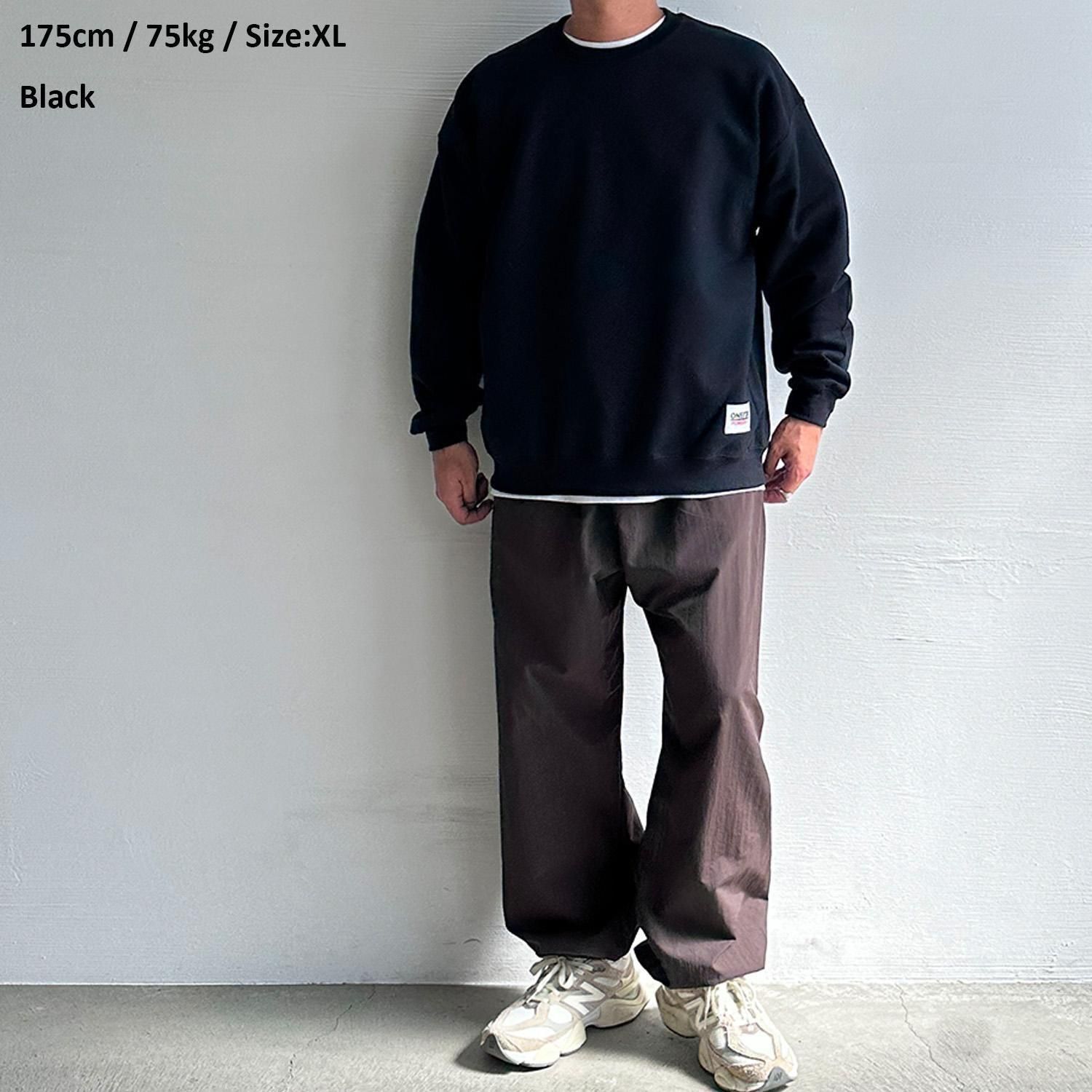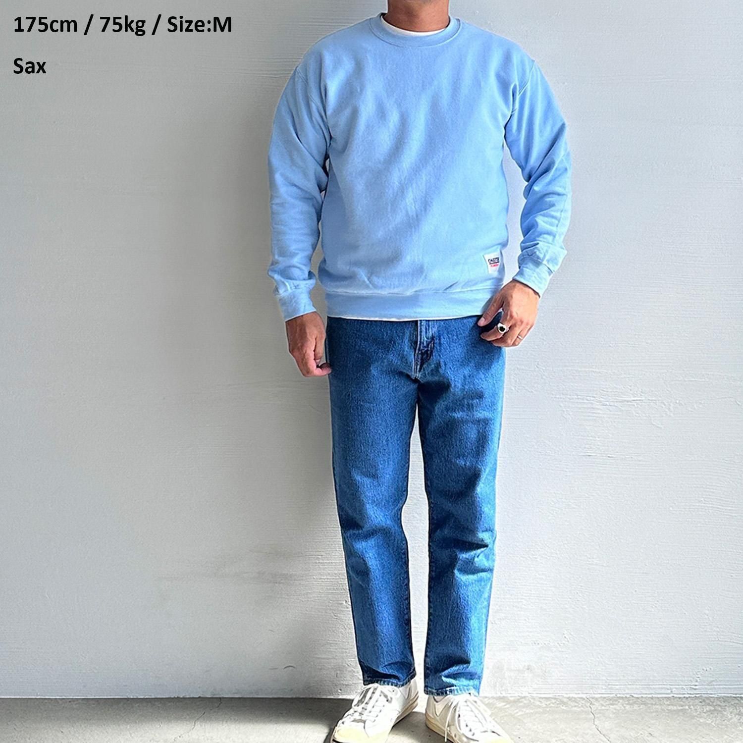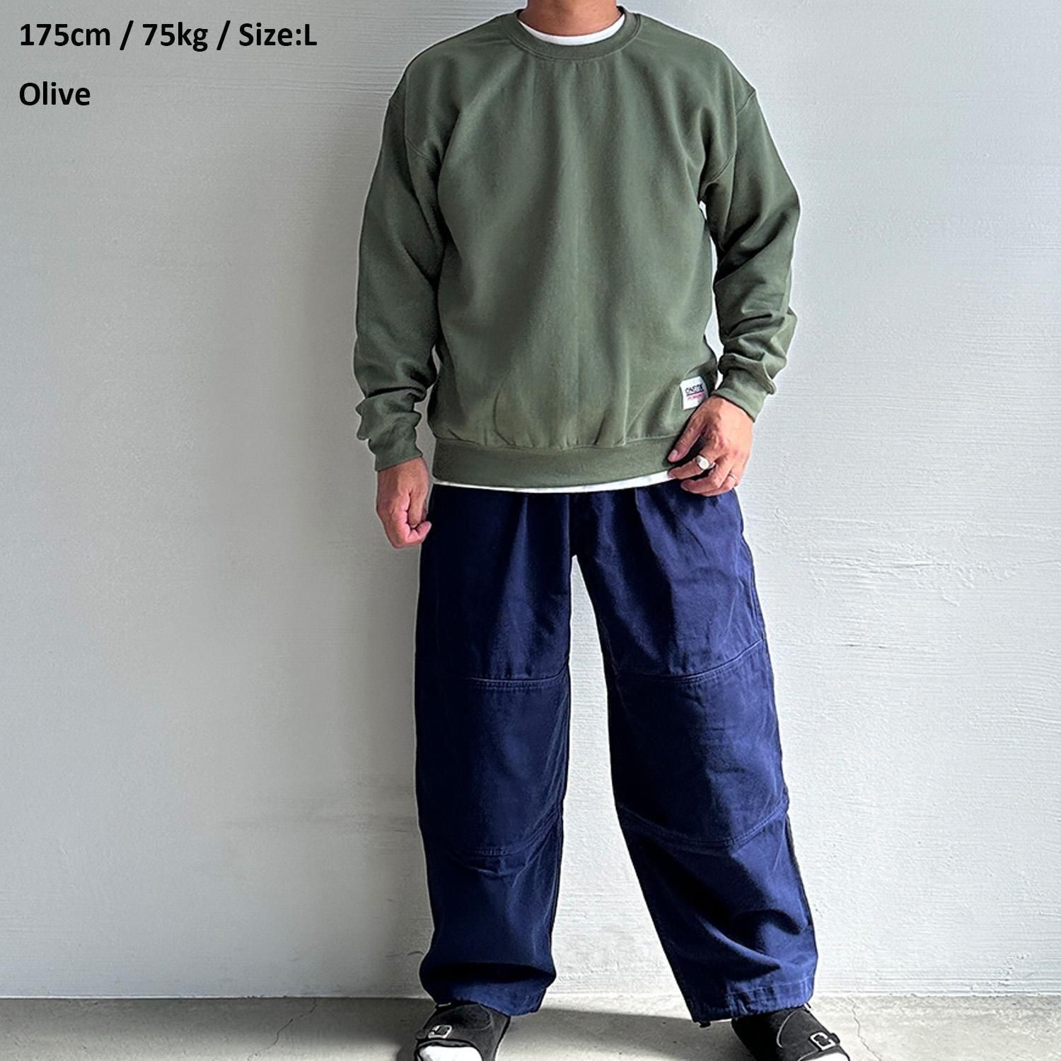 裾に付いたブランドネームが眩しい、ベーシックな裏起毛素材のスウェットシャツです。