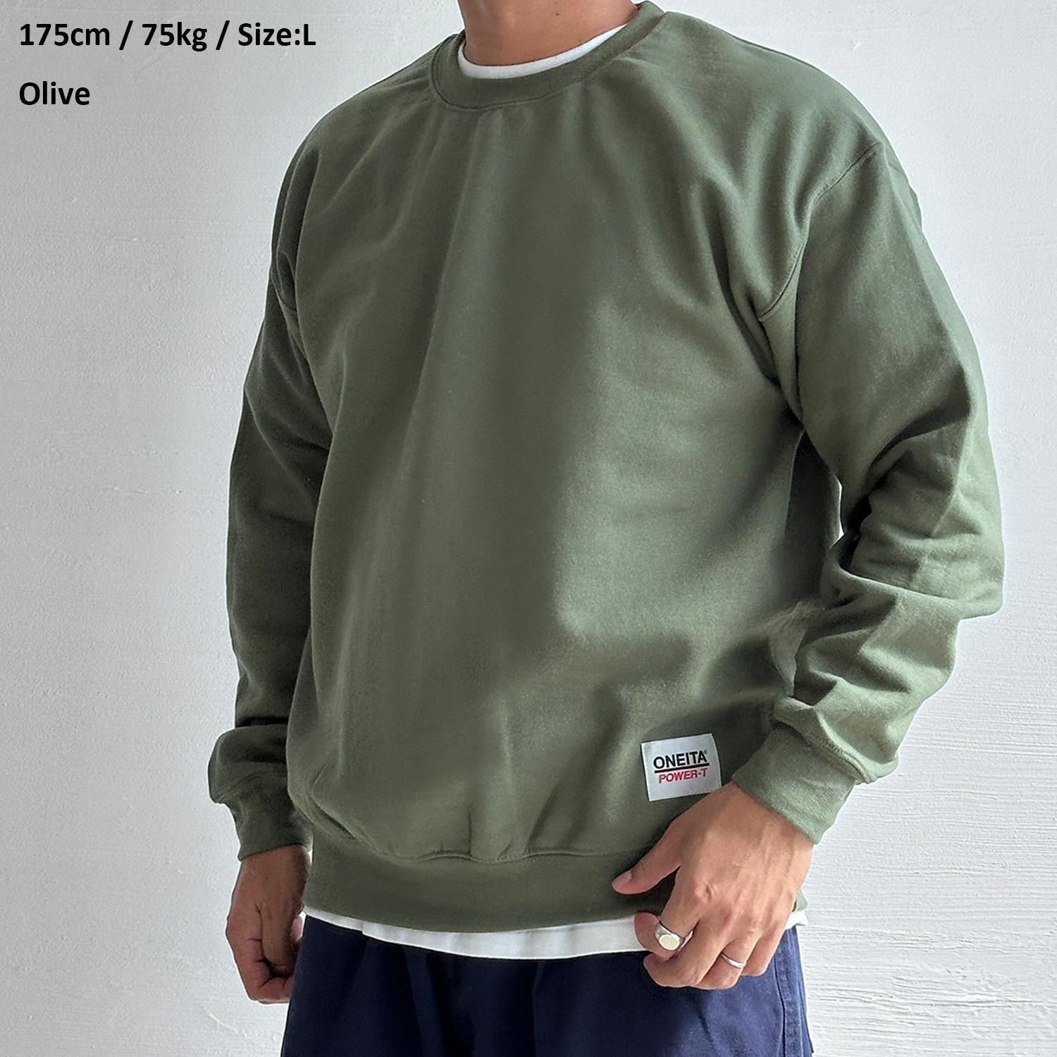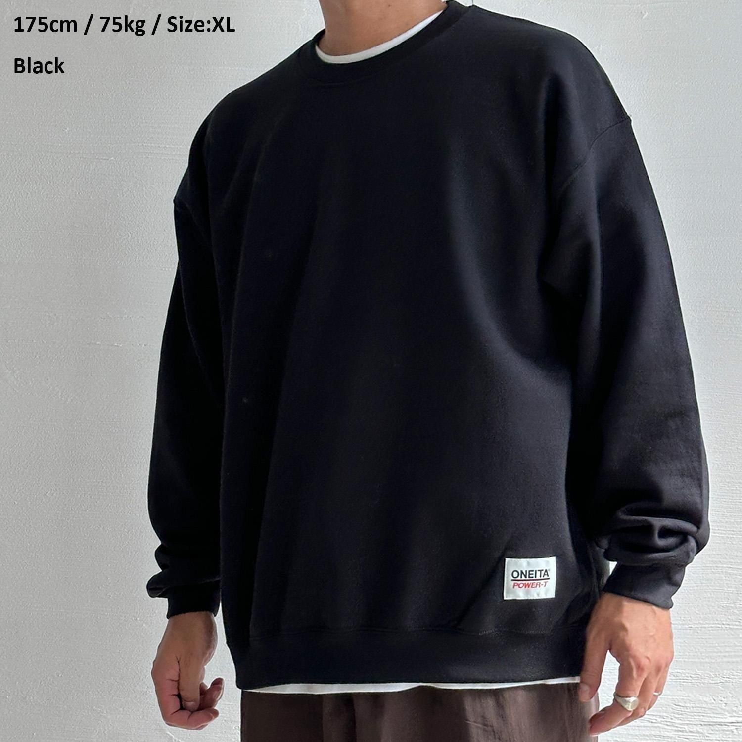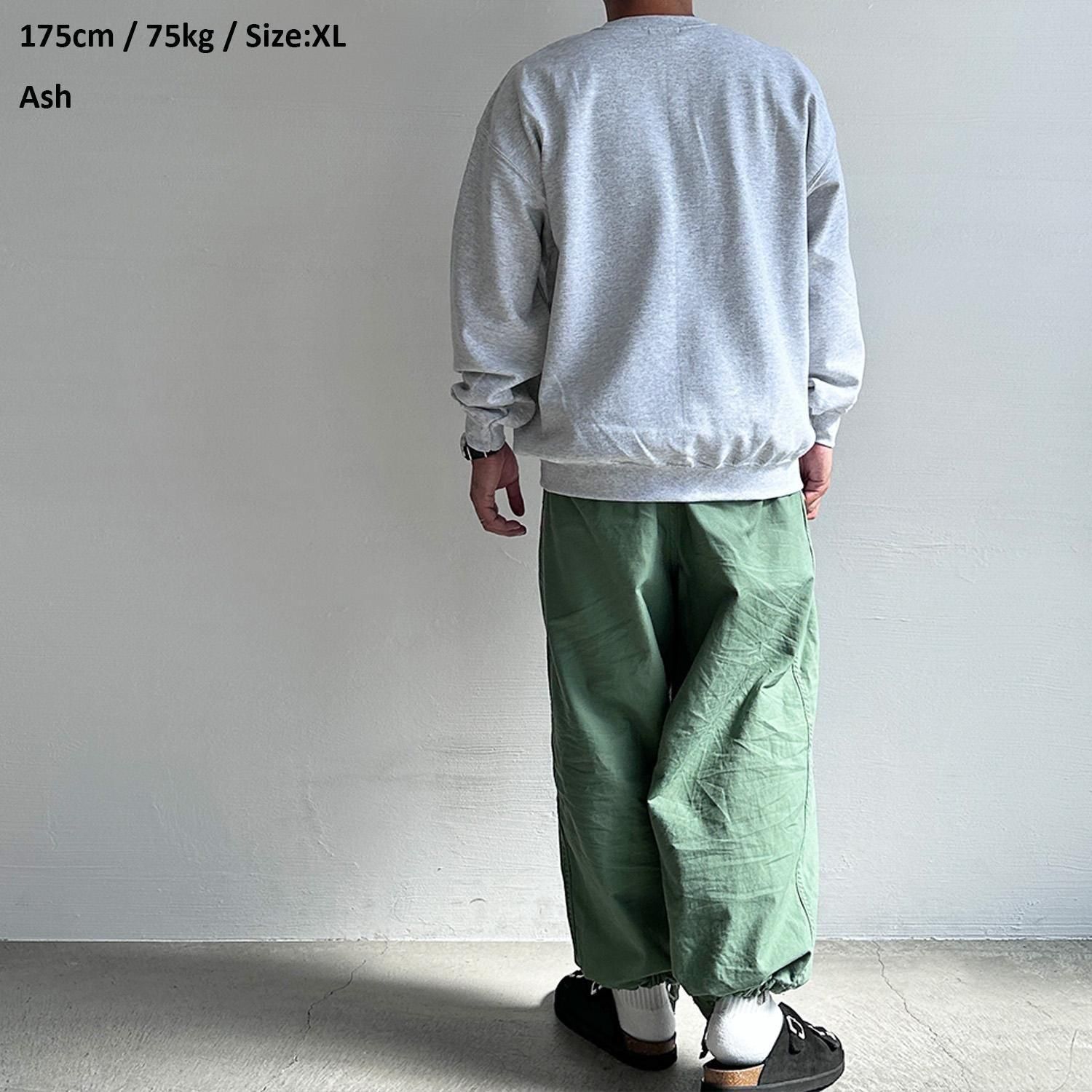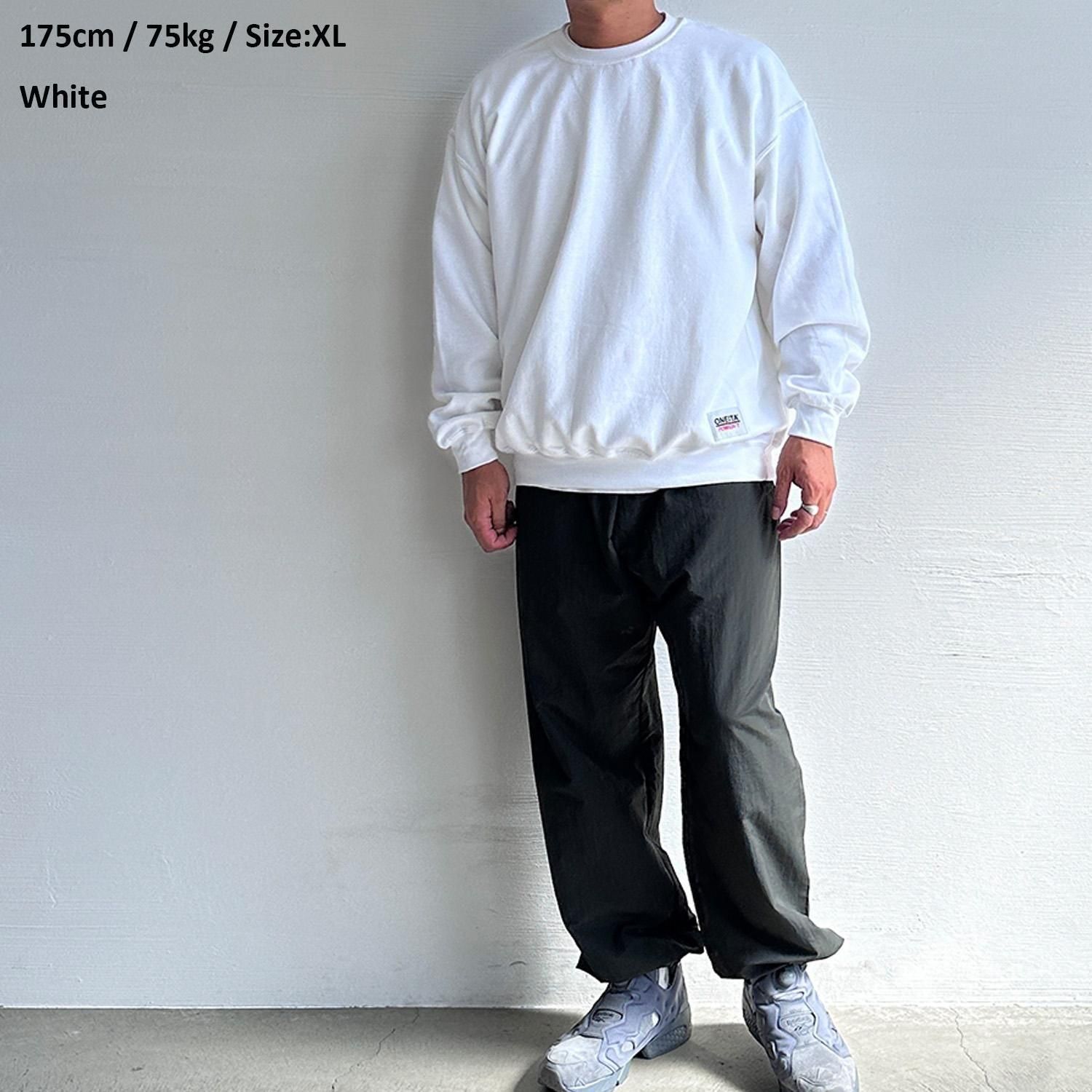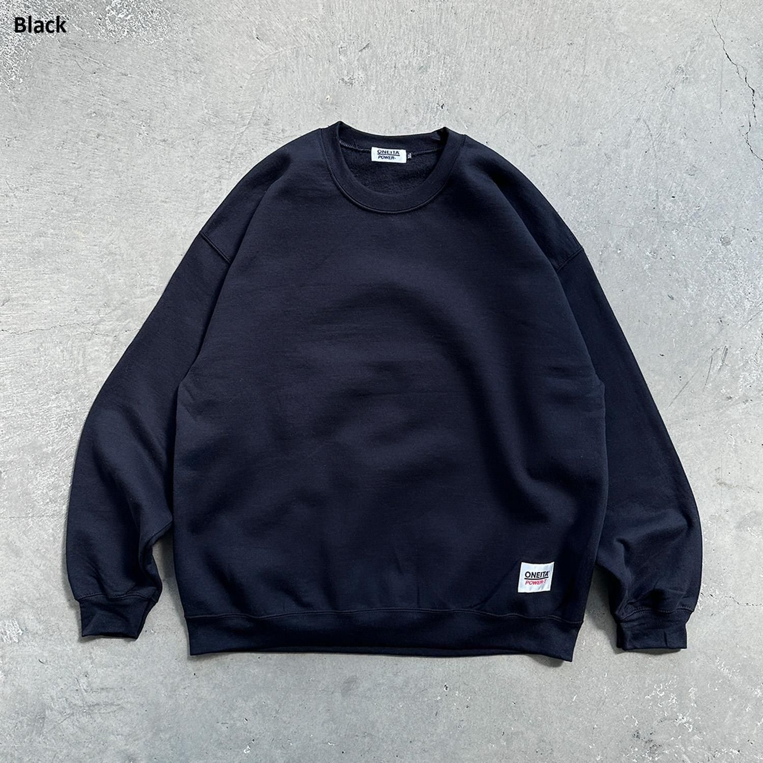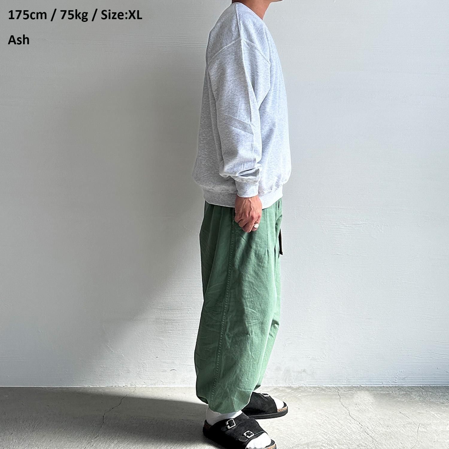 裾に付いたブランドネームが眩しい、ベーシックな裏起毛素材のスウェットシャツです。