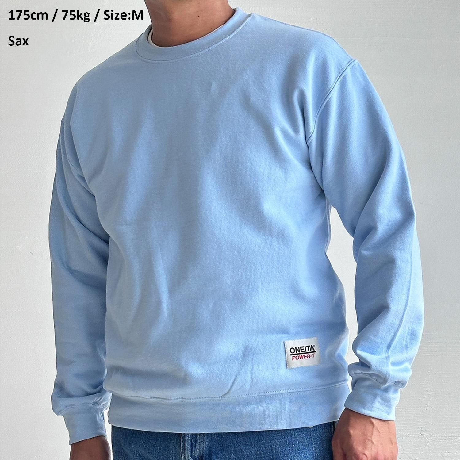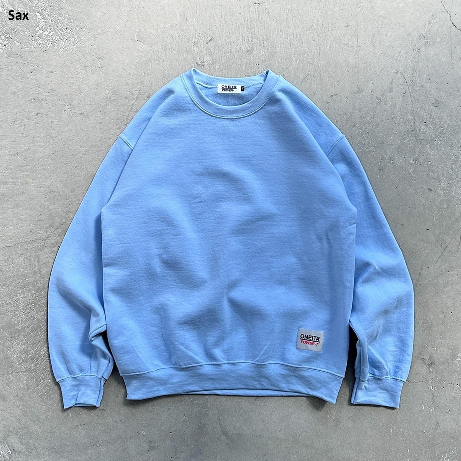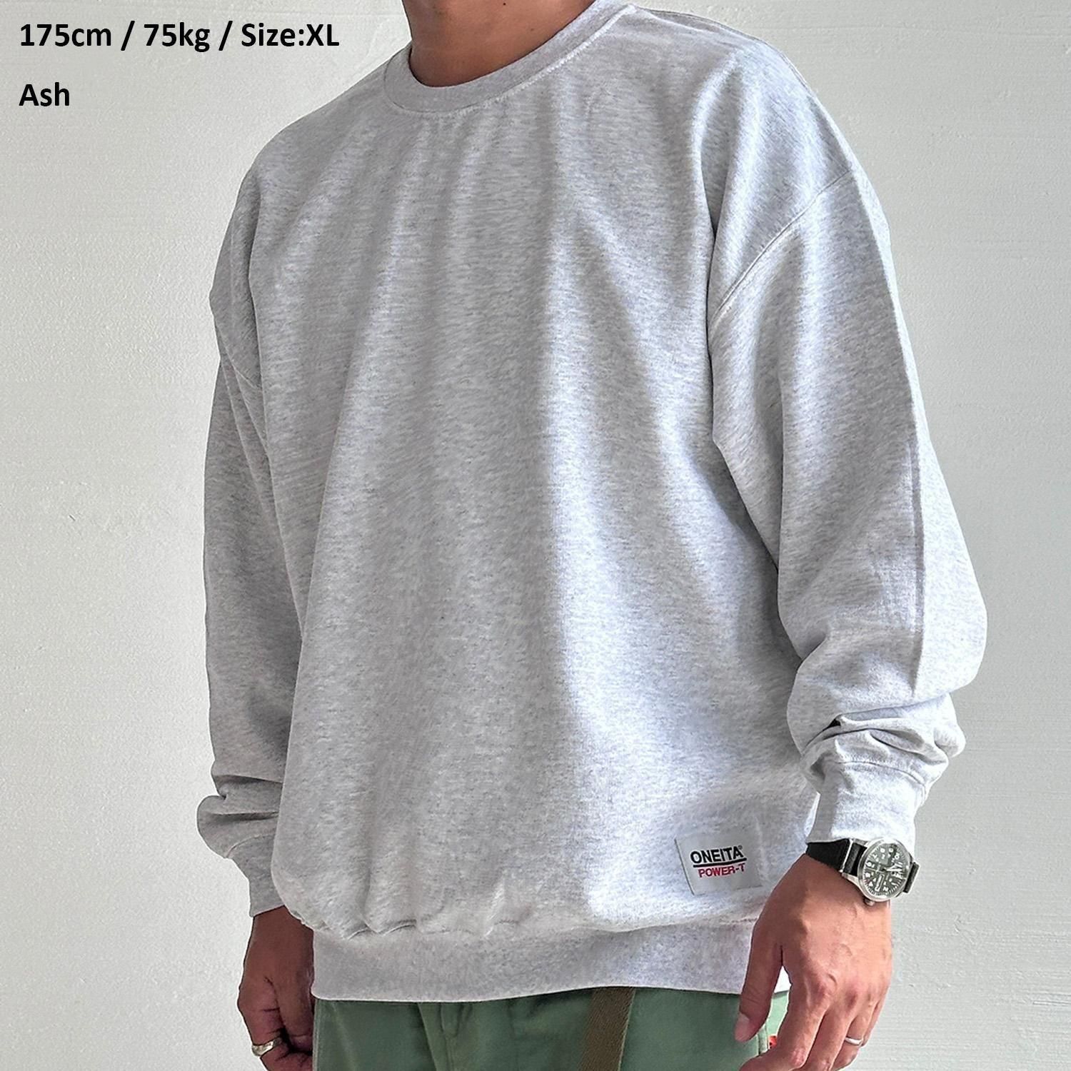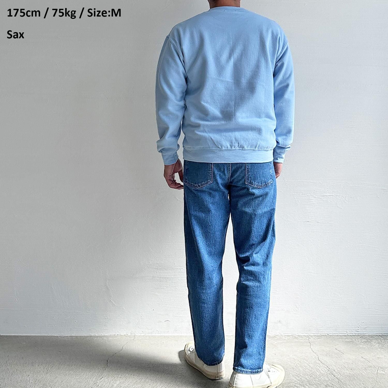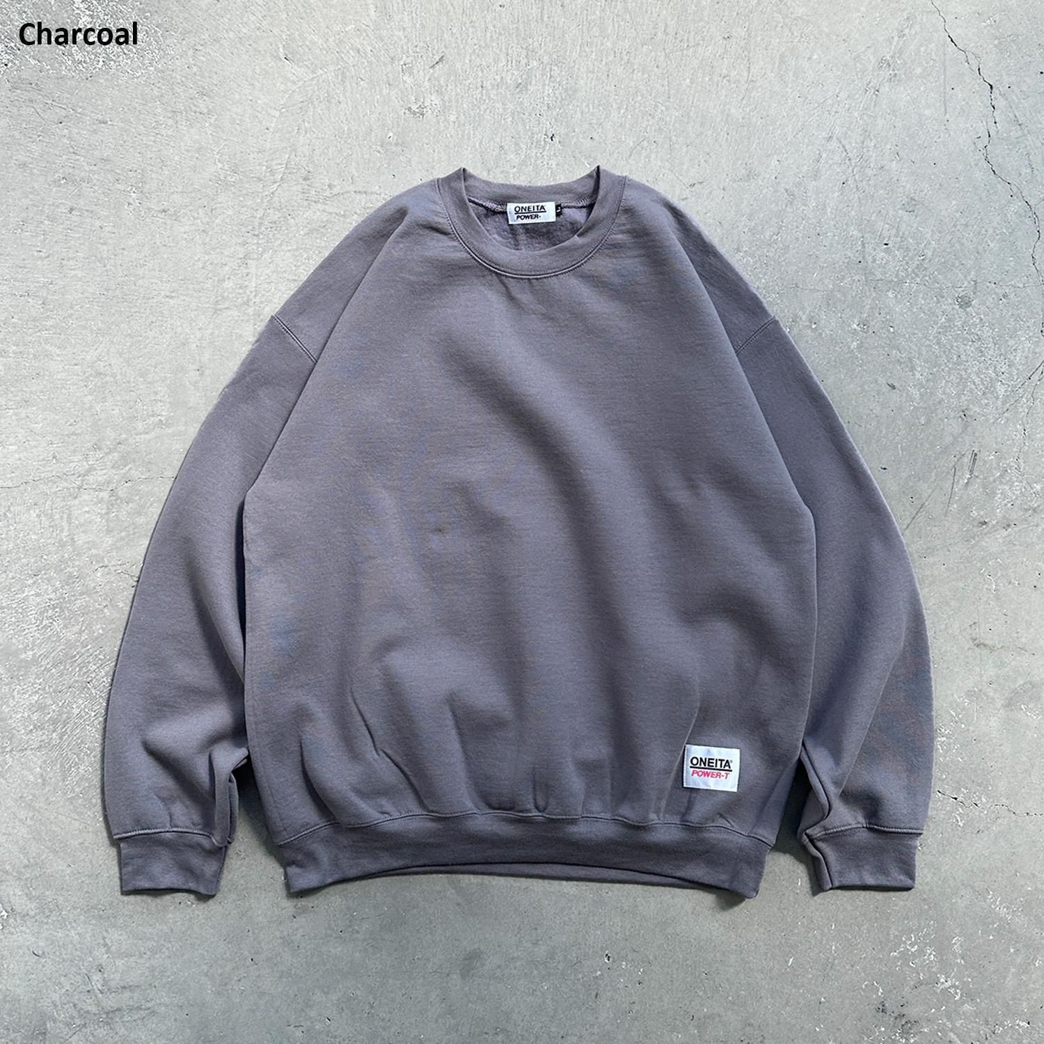 裾に付いたブランドネームが眩しい、ベーシックな裏起毛素材のスウェットシャツです。