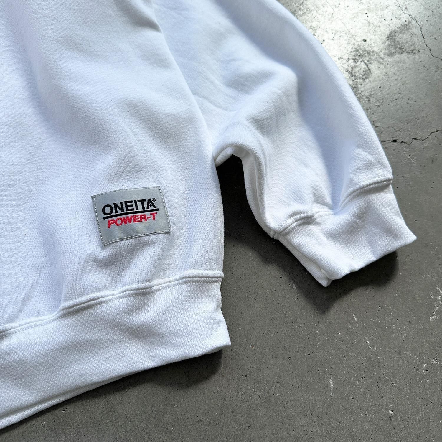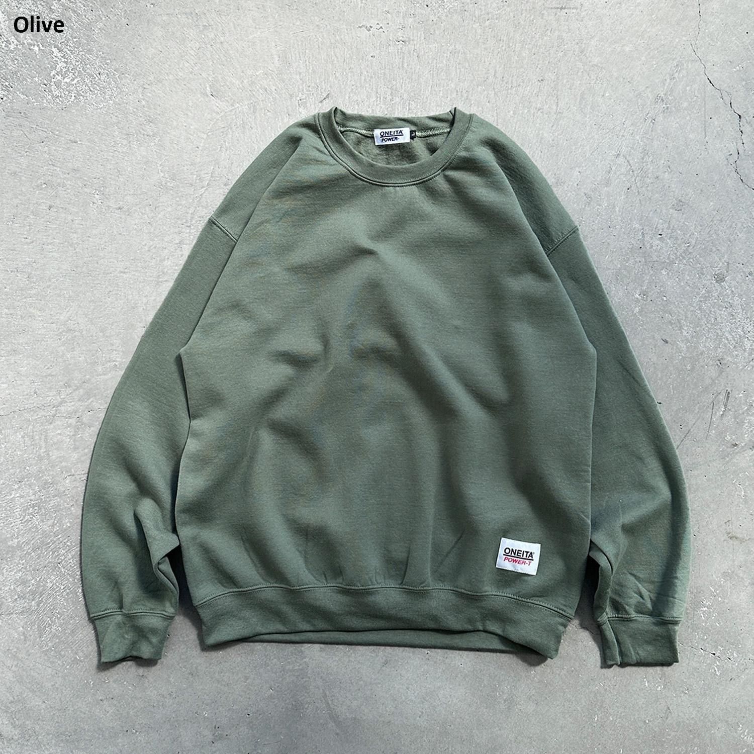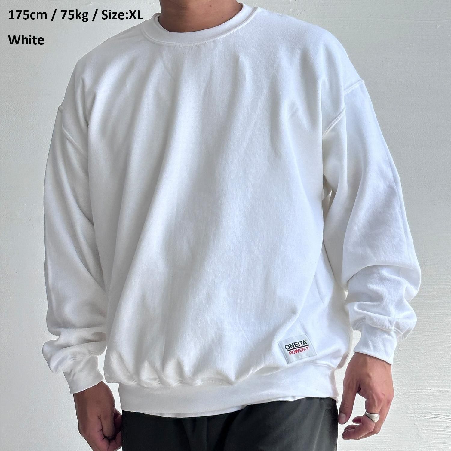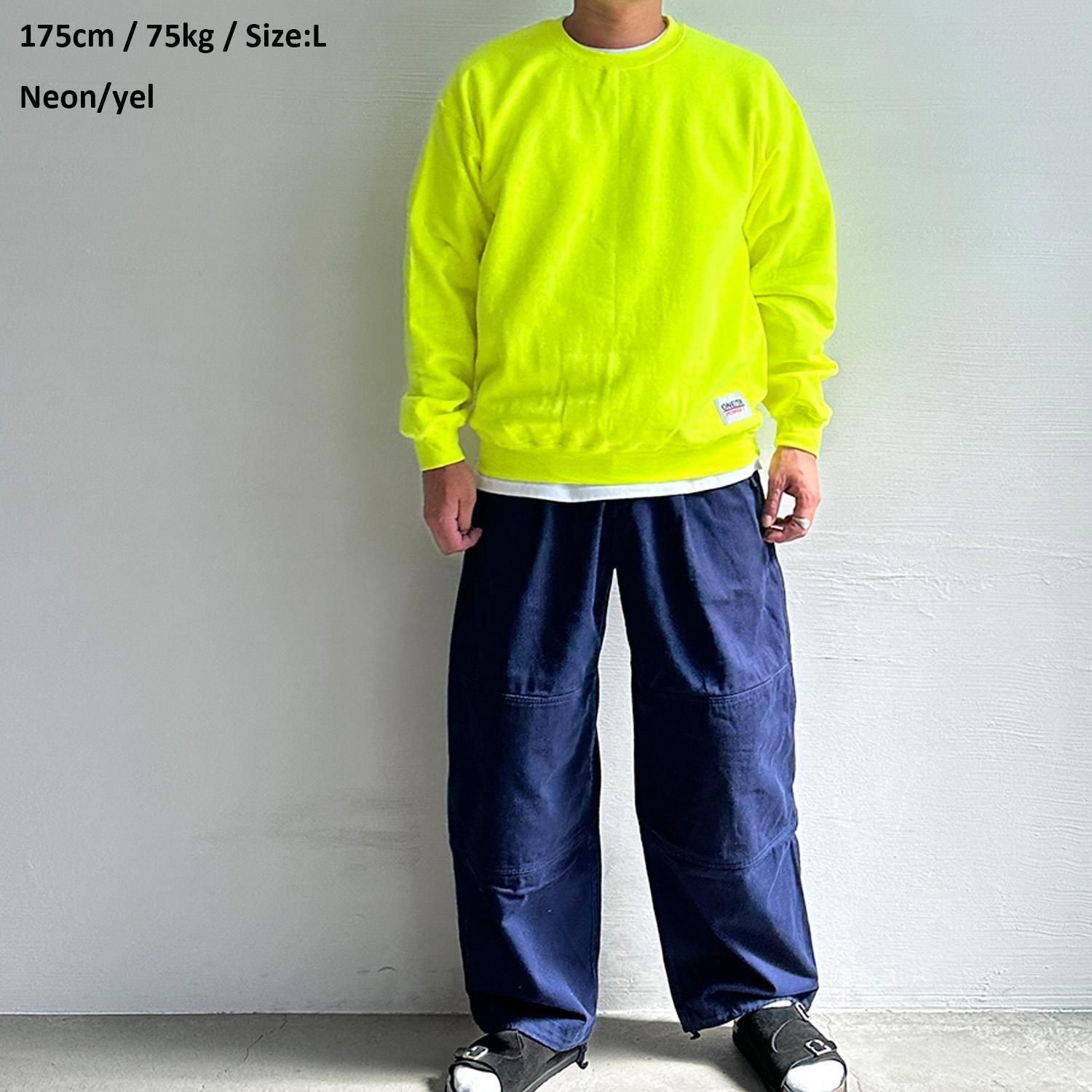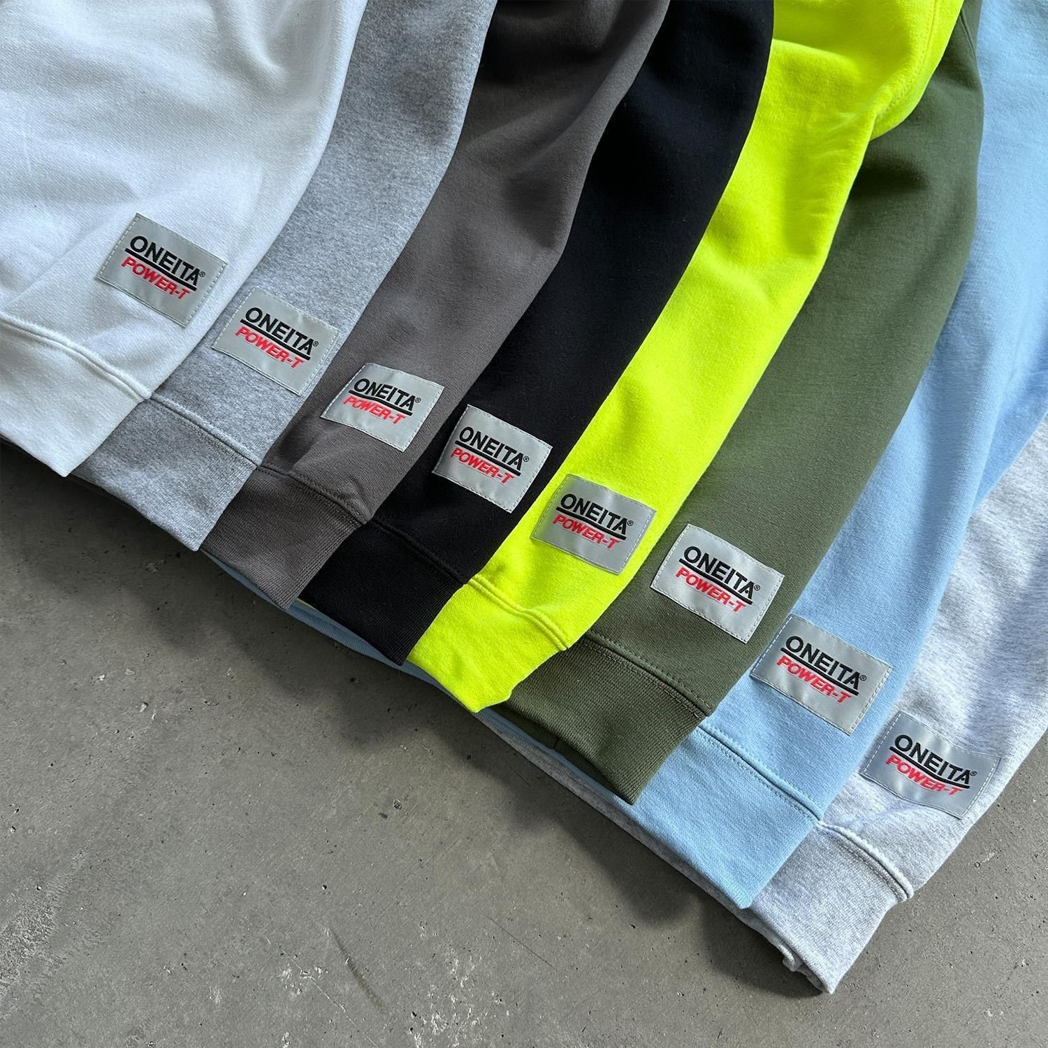 裾に付いたブランドネームが眩しい、ベーシックな裏起毛素材のスウェットシャツです。