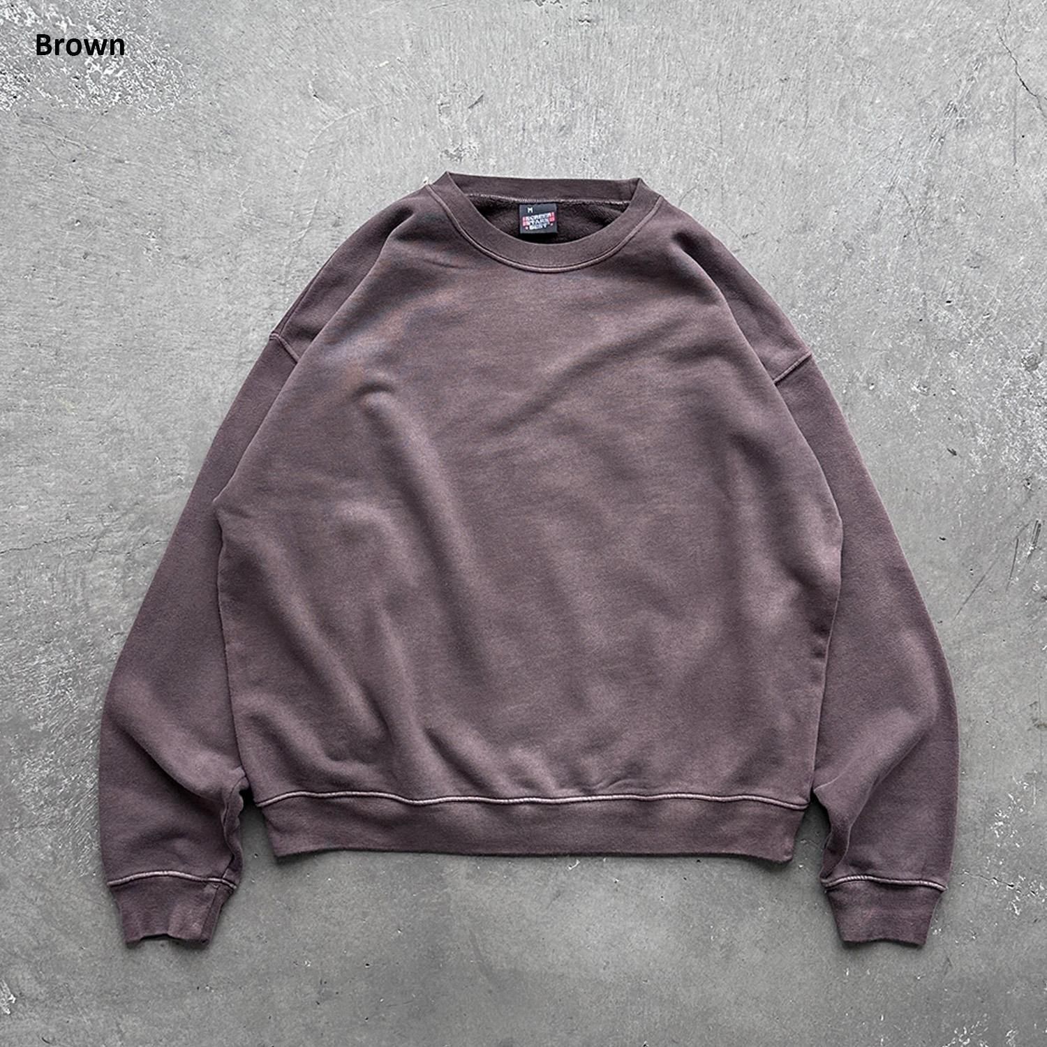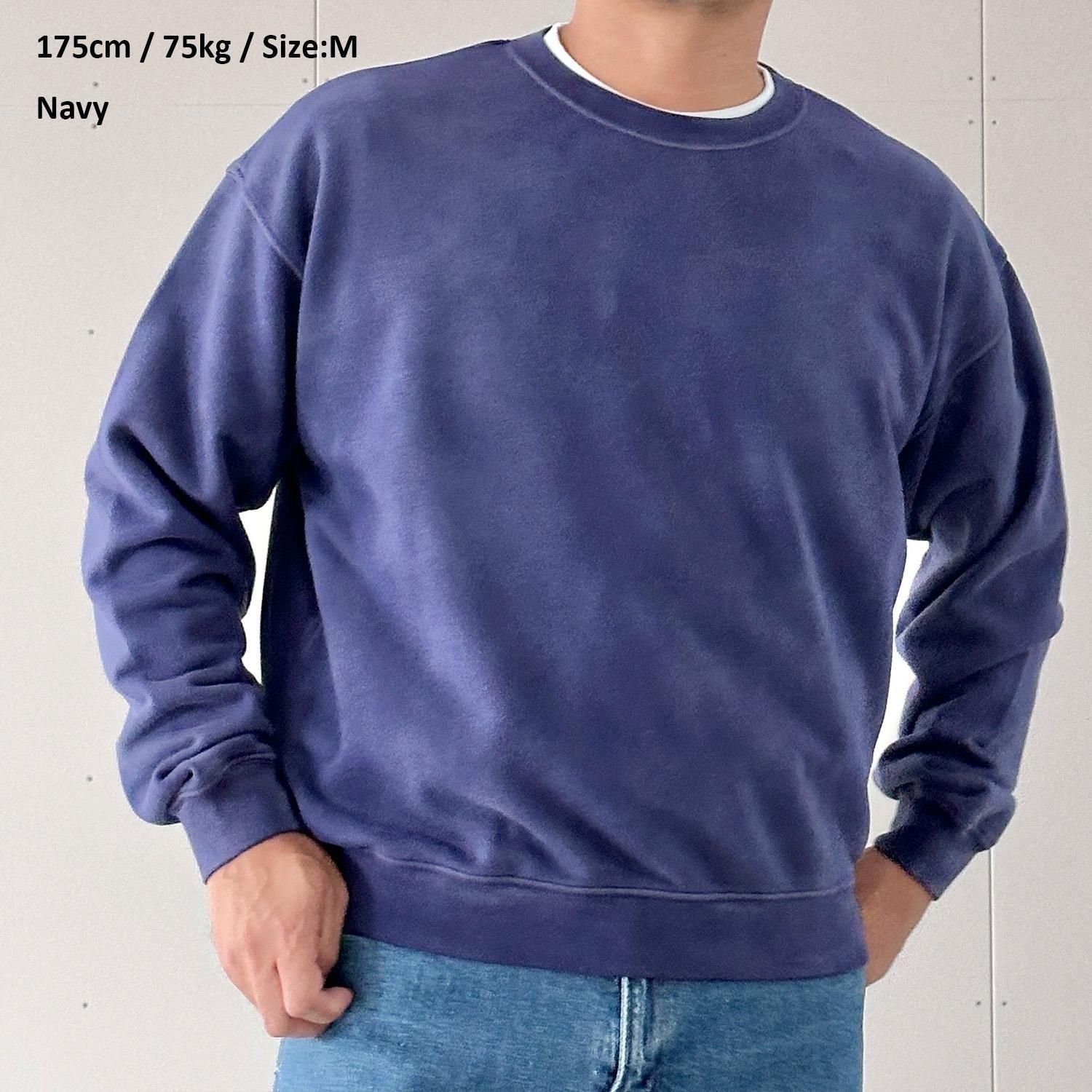 ヴィンテージのような退⾊感(⽇焼けしたような)を再現したスウェットシャツです。