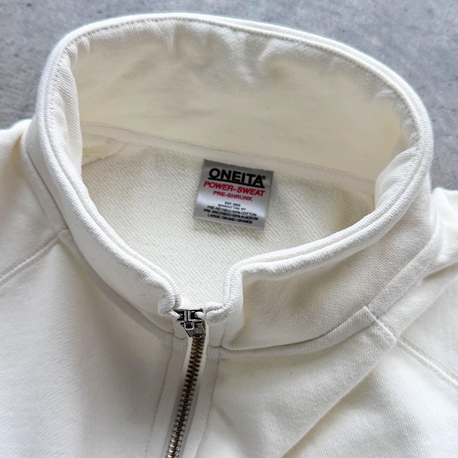 ONEITAの"「ONEITA Super Heavy」シリーズより、無地でも存在感のあるPOWER-SWEATのハーフジップの裏毛スウェットシャツ"が入荷しました。