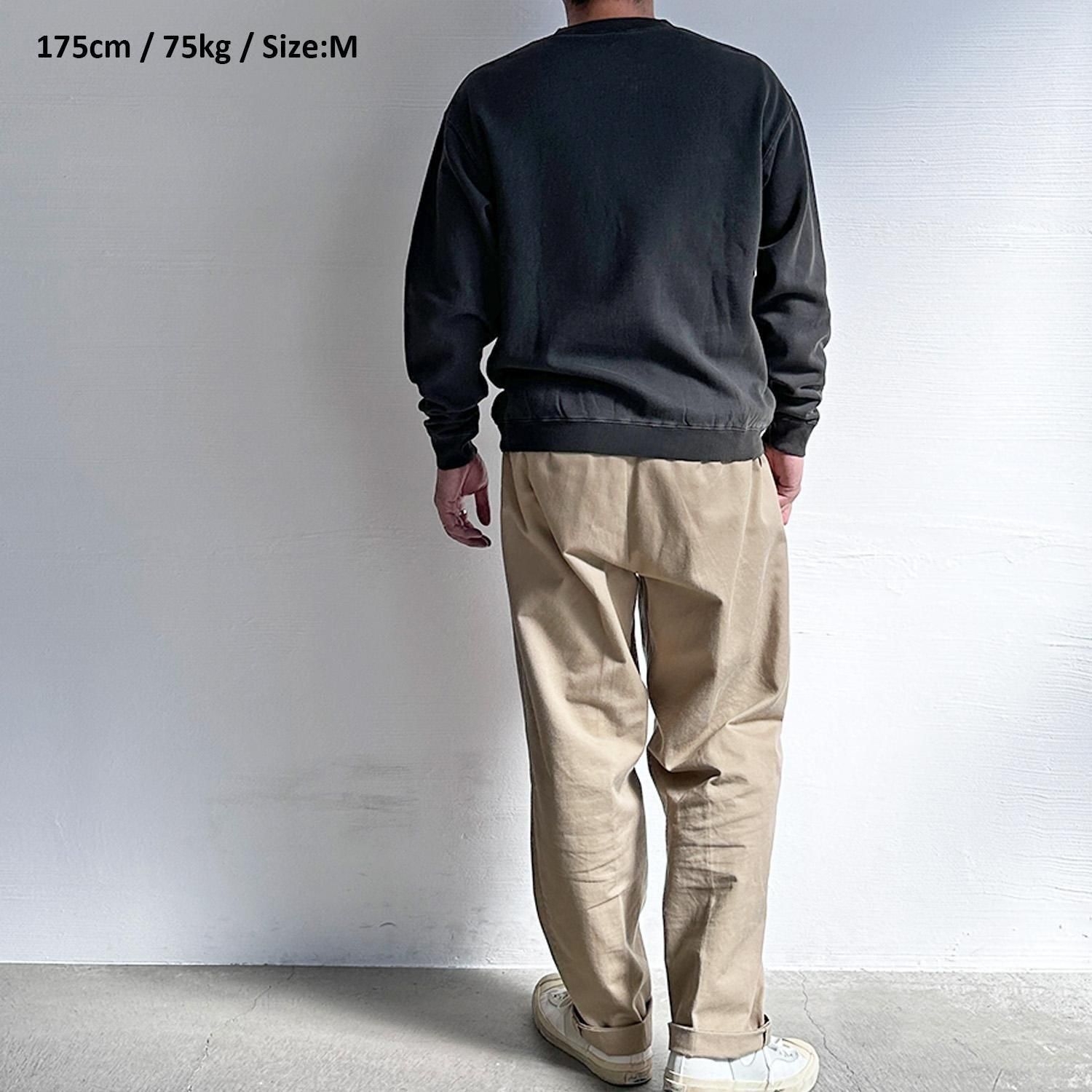 およそ8オンスの・綿80% / ポリエステル20%の混紡素材を使用したミドルウェイトスウェットに、ヴィンテージ風味のピグメント加工が施された、シンプルかつ主役級のスウェットシャツです。